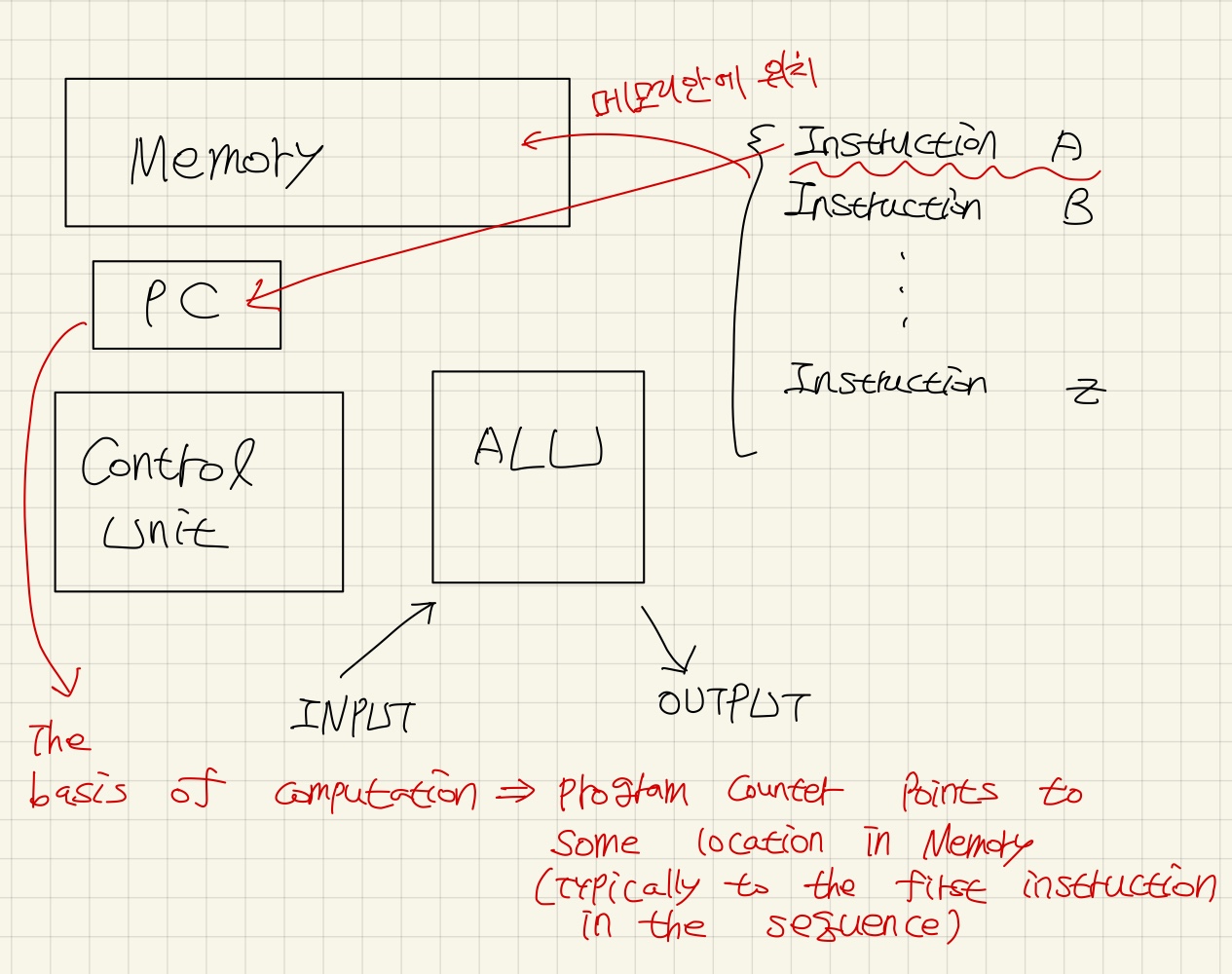 Computation의 근본은 여기서 나온다. 바로 pc(program counter)라는 레지스터가 존재해 실행될 명령의 순서를 제어한다는것!
